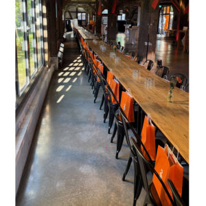 Dieser stapelbarer Metall-Sitztisch ist robust und hat einen klaren und stylischen Look. Die Tischplatte ist aus Vollholz und für einen reibungslosen Transport und Aufbau! Passend dazu bieten wir auch einen Stehtisch in gleicher Optik an.