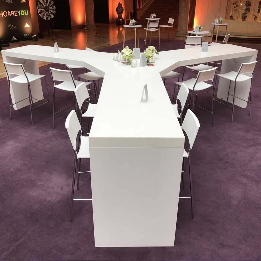 Ein Highlight auf jedem Event. Weiße Brückentische kombiniert mit weißen Stühlen aus unserem Sortiment. In Abstimmung mit den passenden Stehtischen und Barhockern ergibt sich eine stimmige, hochwertige Atmosphäre auf ihrer Veranstaltung, die jeder Gast in positiver Erinnerung behalten wird.