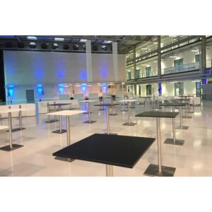 Das hochwertige Edelstahlgestell Lisa 2 ist auch als Doppelsäule mit einer 140cm breiten Tischplatte erhältlich und bietet sich hervorragend im Bereich Messe, Meeting und als Besprechungstisch an. Passend dazu bieten wir auch Stühle und einen Sitztisch in gleicher Optik an.