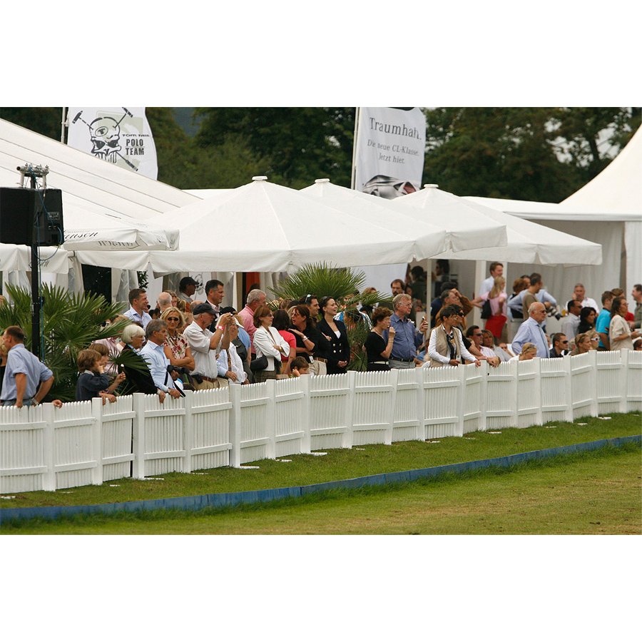 Passend zu unseren weißen Zelten schaffen Sie mit diesen Zäunen eigene abgegrenzte Bereiche bespielsweise für eine Cateringfläche